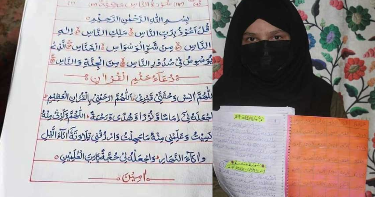 خیبر کچھ یوں ہے کہ، جنوبی کشمیر کے شوپیاں کی ایک 10 سالہ لڑکی نے صرف 30 دنوں میں قرآن مجید کے 30 ابواب ہاتھ سے لکھے۔