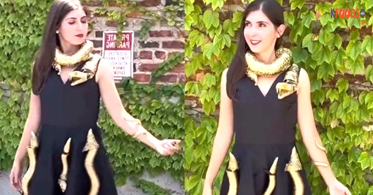 اس لباس پر 3 ڈی پرنٹڈ Medusa سانپوں کے چہرے اور جسم موجود ہیں جن میں سنسرز نصب ہیں۔ کرسٹینا ارنسٹ کا کہنا ہے کہ ان تھری ڈی سانپوں کے چہرے ایسے افراد کو محسوس کرکے اپنا رخ ان کی جانب کرلیتے ہیں جو انہیں دیکھ رہے ہوتے ہیں۔