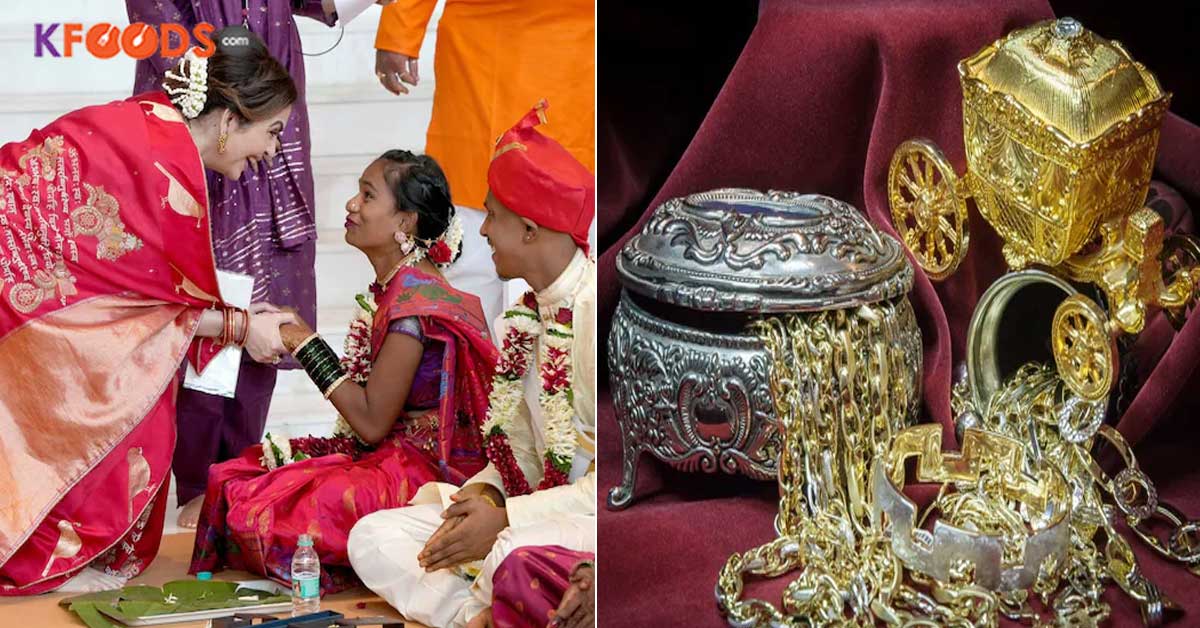 ہر جوڑے کو سونے کے زیورات پیش کیے گئے جن میں منگل سوتر، شادی کی انگوٹھی اور ناک کی نتھ شامل تھی۔ اور چاندی کے زیورات بھی ملے، جیسے پیر کی انگوٹھیاں اور پازیب۔ اس کے علاوہ ہر دلہن کو اس کے استری دھن کے طور پر 1 لاکھ روپے کا چیک پیش کیا گیا۔