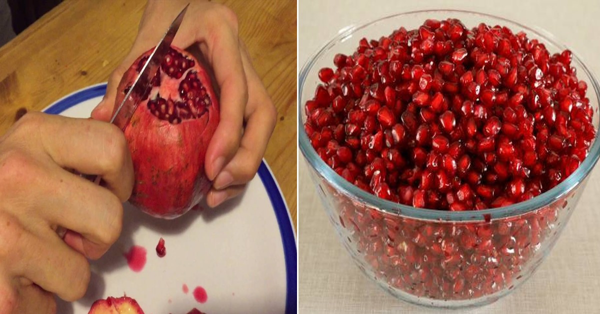 انار چھیلنے سے 1/2 قبل ٹھنڈے پانی میں بھگو دیں۔ اس کو جب چھیلیں گے تو یہ آسانی سے چھل جائیں گے کیونکہ اس کی اوپری تہہ والا چھلکا سکڑنے لگے گا۔