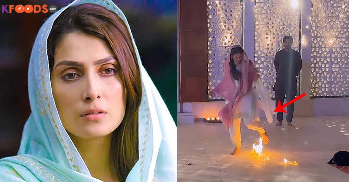 وہ آگ کے شعلے عائزہ خان کے پاؤں سے ٹکراتے ہیں اور وہ ایک دم اپنی جگہ سے اچھل کر پیچھے کی جانب ہٹتی ہیں۔
