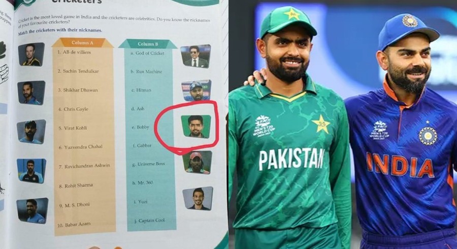 کتاب میں درج ہے کہ بھارت میں کرکٹ سب سے زیادہ پسند کیا جانے والا کھیل ہے اور کرکٹرز مشہور شخصیات بھی ہیں۔ کیا آپ اپنے پسندیدہ کرکٹرز کے عرفی یا نِک نام جانتے ہیں؟ سوشل میڈیا پر شیئر کی گئی تصویر میں جوابات میں بابر اعظم کا نام ’بوبی‘ لکھا ہوا ہے۔