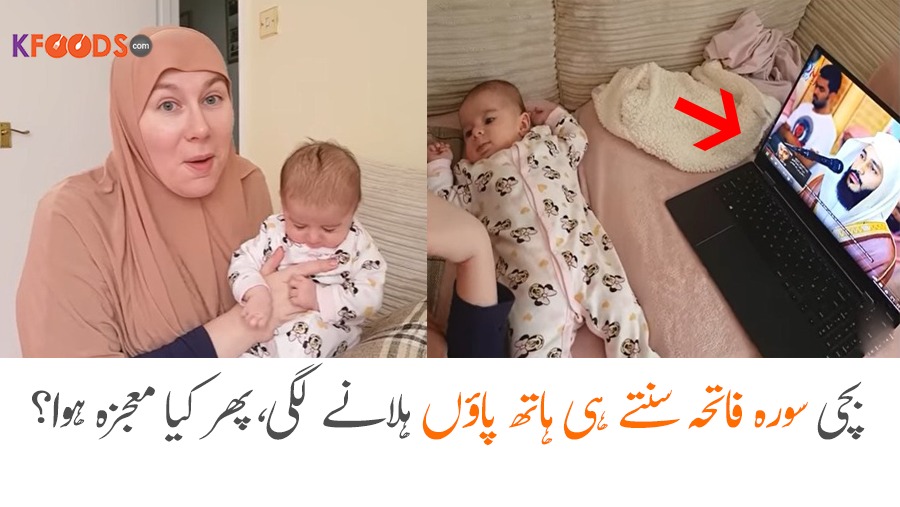 بچی سورہ فاتحہ سنتے ہی ہاتھ پاؤں ہلانے لگی ۔۔ اسلام قبول کرنے والی غیر مسلم لڑکی نے جب نومولود بیٹی کو لیپ ٹاپ پر قرآن سنایا تو اس نے کیا کیا؟ ویڈیو