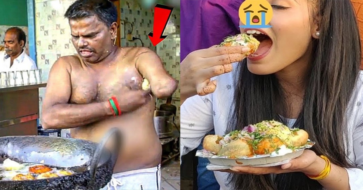 ویڈیو دیکھ کر آپ کو اندازہ تو ہوگیا ہوگا کہ یہ آدمی کیسے ایک ہاتھ نہ ہونے کی وجہ سے اپنی بغل کا سہارا لیتے ہوئے گندگی سے پکوڑے بنا رہا ہے۔ یہاں اس کی ہمت کی داد بھی دیتے ہیں وہیں آپ بھی جب اس طرح کے کھانے والوں کے پاس جائیں تو ایک مرتبہ ان کا کھانا پکانے کا طریقہ بھی دیکھ آئیں ۔۔