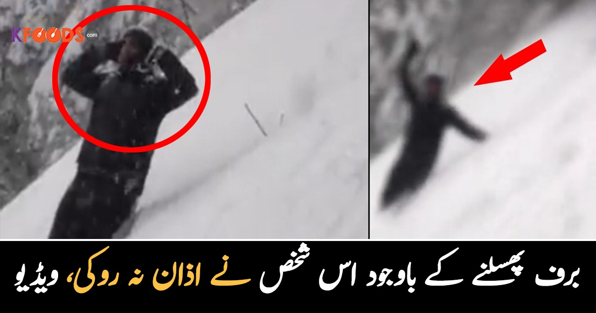 مری میں خطرناک برف باری ہونے پر بھی حی علیٰ الصلاة کی سدا بلند ہوتی رہی ۔۔ برف پھسلنے کے باوجود شخص نے اذان نہ روکی، ویڈیو وائرل