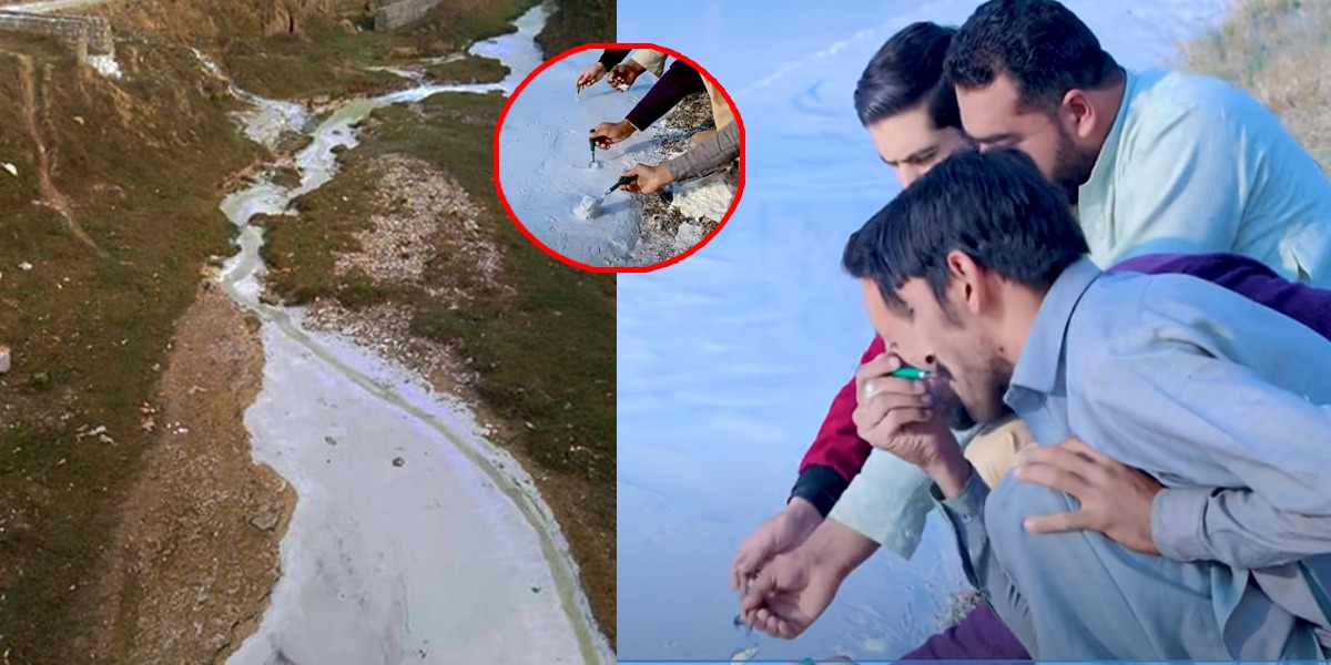 ویڈیو میں دیکھا جا سکتا ہے بونیر میں ایک دلکش سفید نہر واقع ہے جس میں سے بے شمار لوگ چمچ کے ذریعے اس نہر سے ملائی کھاتے معلوم ہو رہے تھے۔ لیکن اصل میں یہ ملائی نہیں بلکہ کچھ اور ہے۔