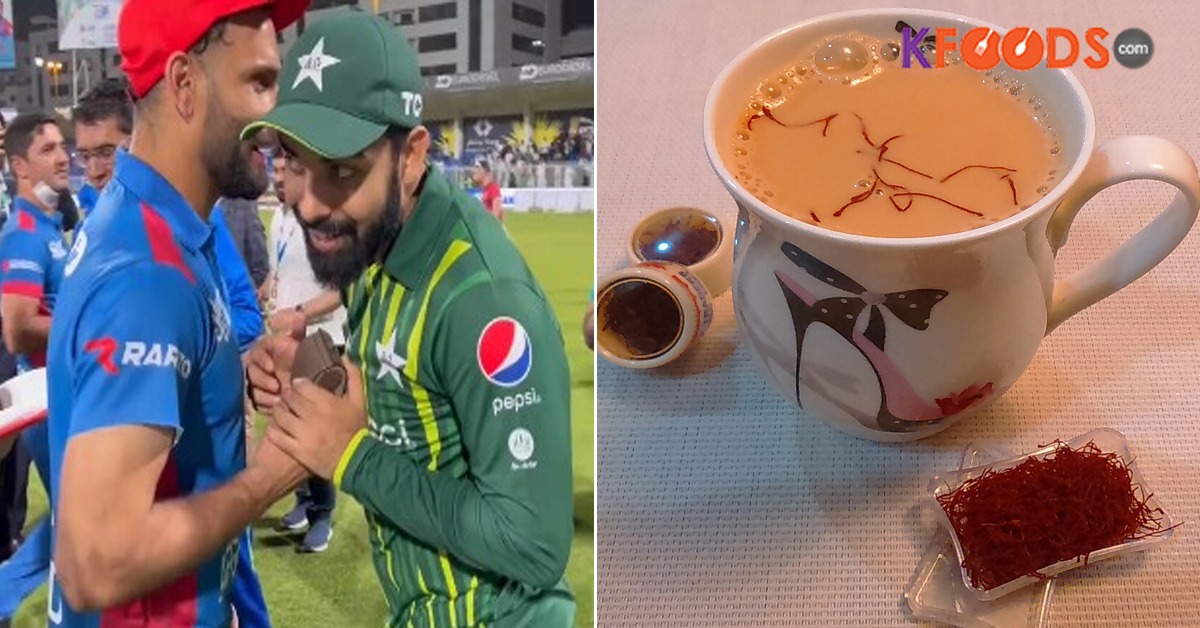 افغانستان کی ٹیم نے پاکستانی کھلاڑیوں کو تحفے میں خاص زعفرانی چائے دے دی۔ ویڈیو میں آپ دیکھ سکتے ہیں کہ کیسے مشہور افغانی کڑک چائے کے پیکٹس کو ٹرے میں سجا کر لایا گیا اور پھر ایک ایک کرکے کھلاڑیوں کو پیش کی۔