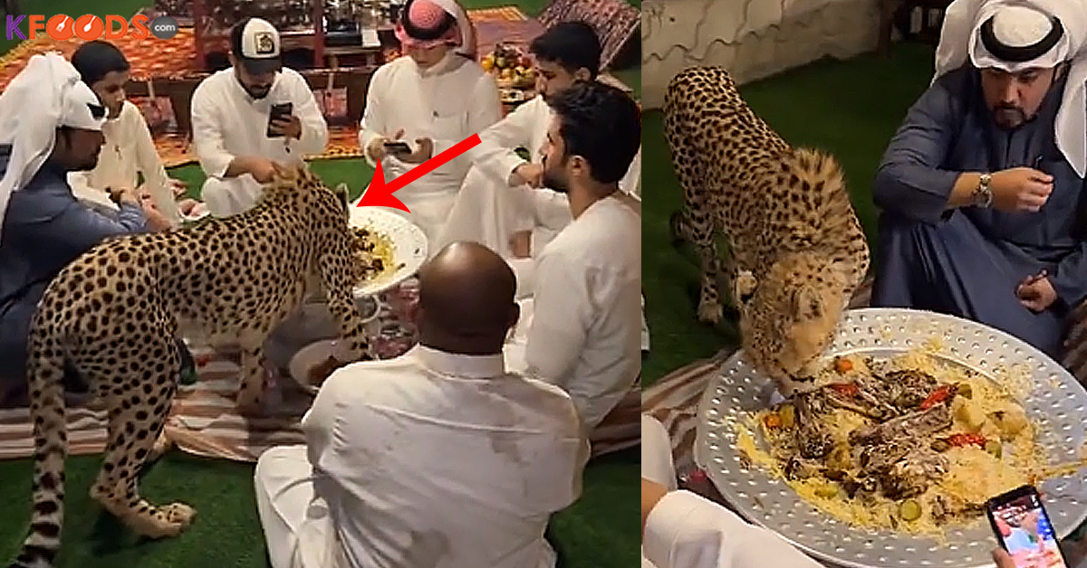 ایک عربی دوستوں کے گروپ کی ویڈیو سوشل میڈیا پر وائرل ہو رہی ہے جس میں دیکھا جاسکتا ہے کہ ایک چیتا انہی کے تھال میں کھانا کھانا شروع ہوگیا۔