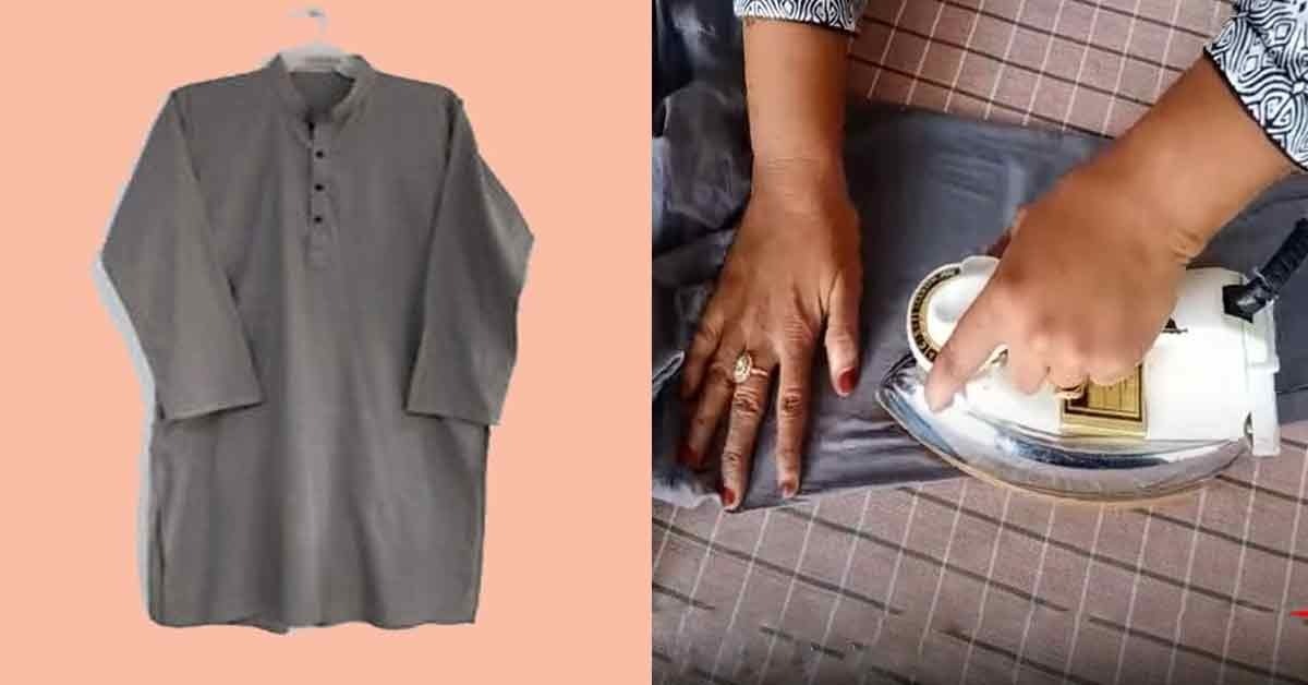 بٹن والے حصے کی جانب استری کرتے ہوئے پہلے ایک سائیڈ کو مڑ کر ہٹا دیں اور دوسری جانب استری پھیریں۔ اس کے بعد دوسرے والے کو بھی سیدھا کر کے استری کریں۔ کرتا پلٹ کر ویڈیو میں بتائے گئے طریقے سے کندھوں والی جگہ پر استری کریں۔ لیجئے چد منٹوں میں زبردست سی استری والا جوڑا تیار ہے۔ یہی طریقہ آپ مردانہ پینٹ شرٹ پر بھی آزما سکتی ہیں۔