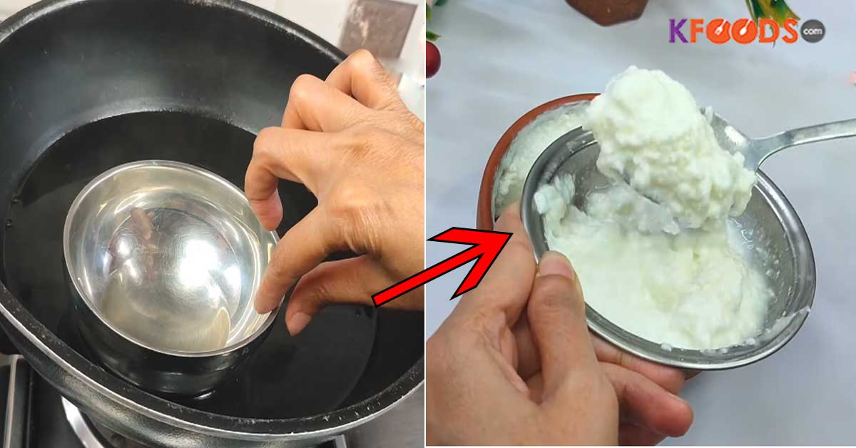 ۔ سب سے پہلے ایک دیگچی میں پانی اور اس میں ایک اسٹیل کی پیالی رکھ کر ڈھکن لگا دیں اور ہلکی آنچ پر اسے گرم ہونے دیں، اور چولہا بند کردیں۔