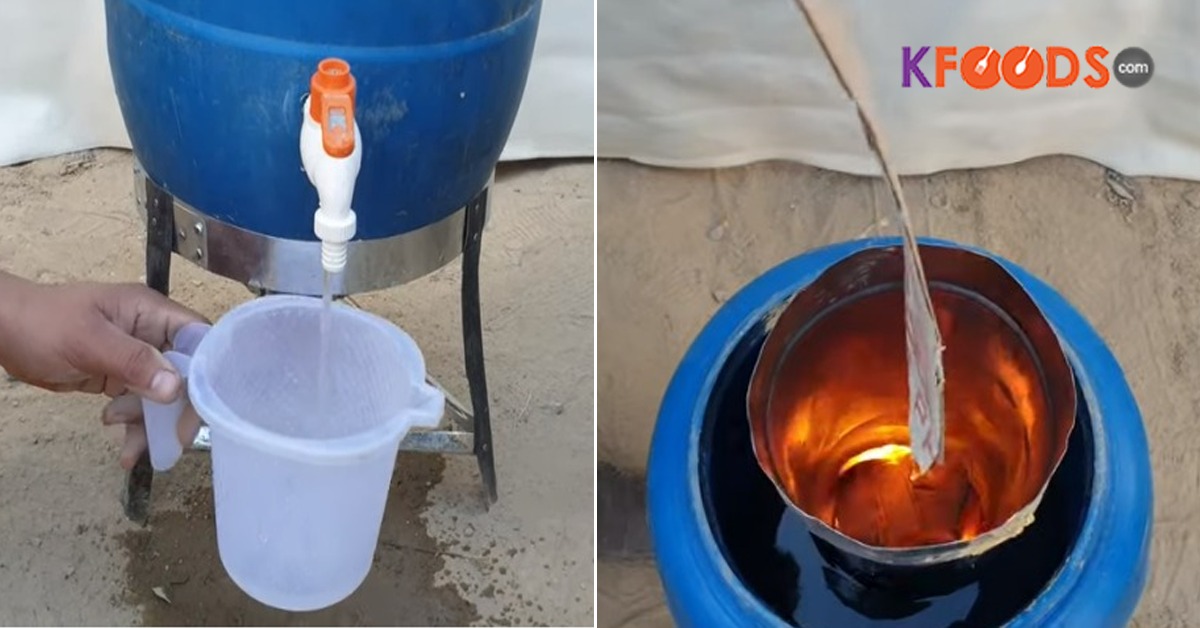 ٭ اب ٹن پلاسٹک کی ایک شیٹ خریدیں جس کو ٹینک کے حساب سے کٹوالیں۔ جس طرح ویڈیو میں دکھایا گیا ہے کہ ٹینک کے اندر گولائی میں یہ شیٹ لگوائی گئی ہے تاکہ پانی اندر ڈالنے کی بھی جگہ ہو اور درمیان میں سے آگ سلگتی رہے۔