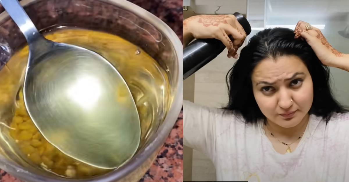 ۔ اگر آپ کے بال نہیں بڑھ رہے اور بہت گر رہے ہیں تو رات بھر بھگا ہوا میتھی دانے کا پانی صبح میں چھان کر اس میں ایک چمچ ادرک کا رس شامل کریں اور اسپرے بوتل میں بھر دیں، اس سیرم کو صرف اپنے بالوں کی جڑوں میں نہانے سے دو گھنٹہ پہلے لگائیں پھر سر دھولیں