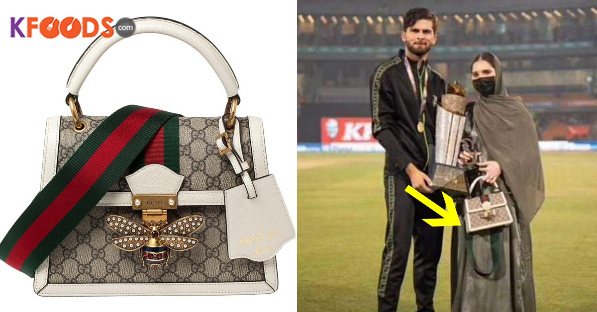 شاہین شاہ کی بیوی انشاء آفریدی بھی میچ دیکھنے کے لیے اپنی بہن اقصیٰ آفریدی کے ہمراہ سٹیڈیم میں موجود تھیں۔ میچ جیتنے کے بعد شاہین کی بیگم اور ان کی بہن دونوں ہی گراؤنڈ میں شاہین کے ساتھ خوشیاں منا رہی تھیں۔ ٹرافی کے ہمراہ دونوں میاں بیوی کی یہ پہلی تصویر سوشل میڈیا کی زینت بن رہی ہے۔ وہیں ایک سوال بھی فینز کے دلوں میں خوب گھر کر رہا ہے کیونکہ شاہین شاہ کی بیگم نے جو ہینڈ بیگ لے رکھا ہے وہ معروف عالمی برانڈ گوچی کا ہے جو اب آؤٹ آف سٹاک ہے یعنی آج کل یہ بیگ لوگوں کو نہیں مل رہا البتہ اس کی آفیشل قیمت 2,213 ڈالر ہے جو پاکستانی 6 لاکھ 14 ہزار سے بھی زائد ہے۔