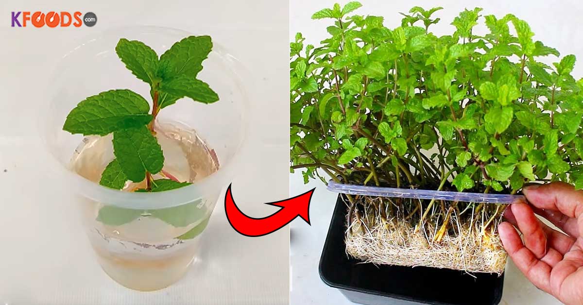 پودینے کی صحت مند ٹہنیوں کو چُنیں، نیچے سے پتے ہٹا دیں تاکہ وہ پانی میں نہ آئیں۔
