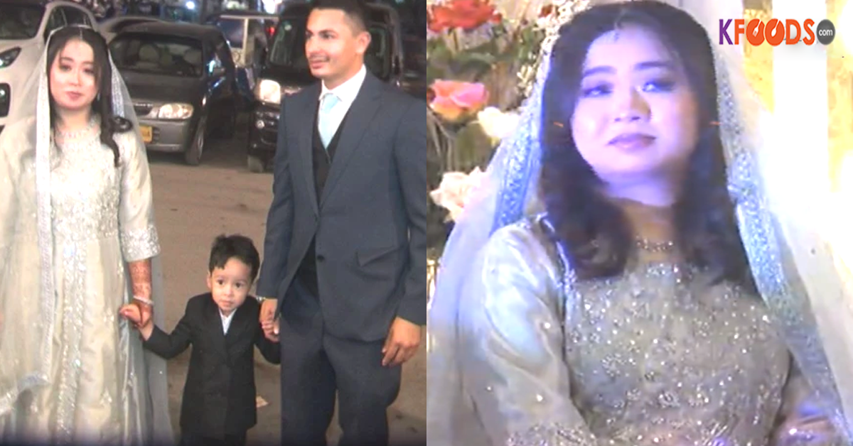 کراچی میں ایک انوکھی تقریب، جہاں تین سال کے انتظار کے بعد جاپانی دلہن اور پاکستانی دولہا کے ولیمے کا اہتمام کیا گیا، جو ہر لحاظ سے روایتی پاکستانی رنگوں میں ڈوبا ہوا تھا۔ دلہن حنفیہ، جو اسلام قبول کرنے سے پہلے ہوزمی یوشینو کہلاتی تھیں، اپنے ساڑھے تین سالہ بیٹے محمد زین کے ساتھ گلستان جوہر کے شادی ہال میں اس تقریب کی زینت بنیں۔ زین، جو اپنے والدین کی خوشیوں میں خوب شرکت کر رہا تھا، اپنی معصومیت کے ساتھ پاکستانی رسومات کو خوشی اور حیرت کے ساتھ دیکھتا رہا۔