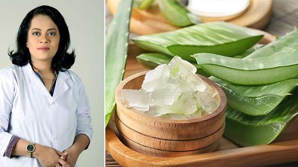• اب تازہ ایلوویرا کے 2 سے 3 عدد پتے کاٹ کر ان سے چمچے کی مدد سے سارا جیل نکال کر الگ کر لیں۔