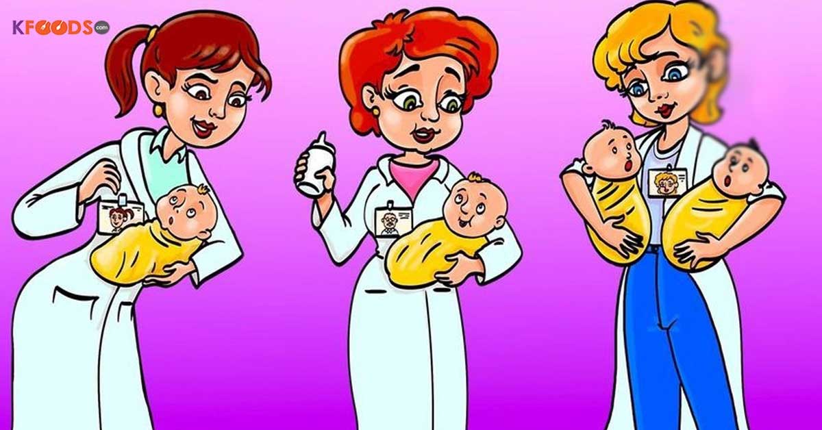 اوپر موجود تصویر میں آپ کو تین نرس دکھائی دے رہی ہیں اور ہر نرس کے ہاتھ میں بچہ ہے جنہیں وہ گود میں اٹھائی ہوئی ہیں۔