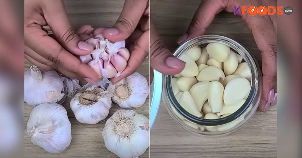 ۔ جب لہسن سے چھلکے الگ ہونے لگیں تو انہیں چھیل کر ایک کانچ کی برنی میں ڈال دیں