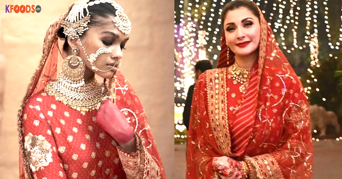 اصلی دلہن تو یہی لگ رہی ہیں۔۔ بھتیجے کی شادی میں مریم نواز نے کس مشہور بھارتی ڈیزائنر کا جوڑا پہنا؟ سرخ لباس کے چرچے