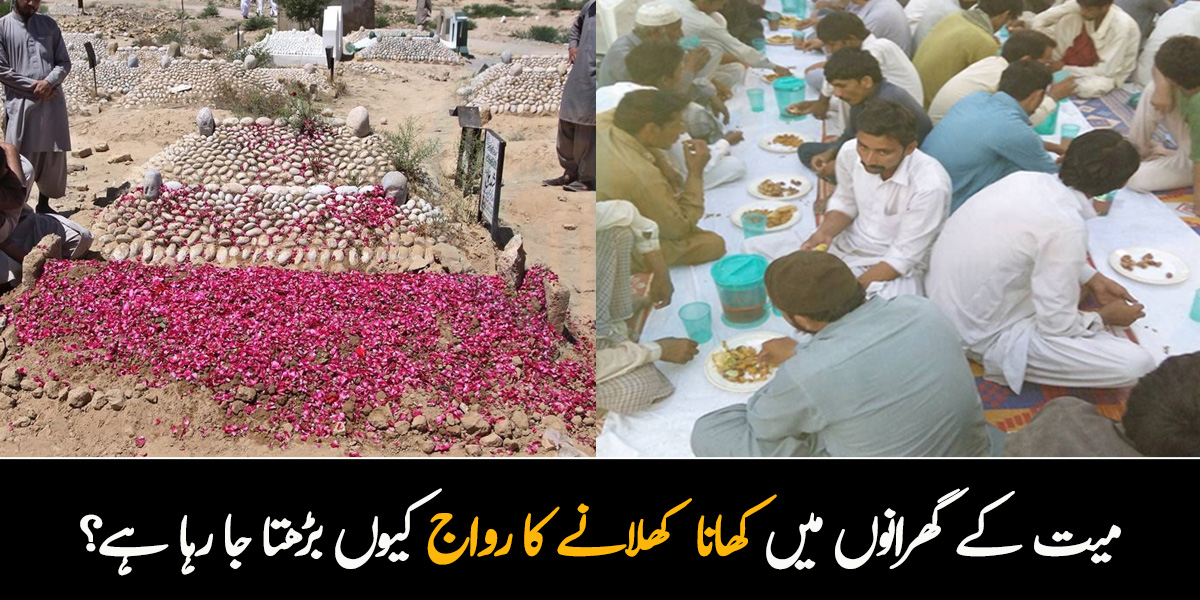 ارے کوئی خوشی کی بات ہے یا کوئی شادی کی تقریب ہے کہ کھانا کھا کر جائیے گا؟ کیا یہ ہمارے مذہب میں موجود ہے؟ کھانے کا انتظام میت کے گھر کیا جانا اخلاقی اعتبار سے بھی درست نہیں۔ مگر ہمارا معاشرہ کسی طور اس بات کو سمجھنے کے لیے تیار نہیں ہے۔ ہر گزرتے دن کے ساتھ اموات کی شرح میں اضافہ ہو رہا ہے۔ جہاں اموات کی شرح میں اضافہ ہو رہا ہے وہیں کھانے کھلائے جانے کا اہتمام بھی بڑھ رہا ہے؟