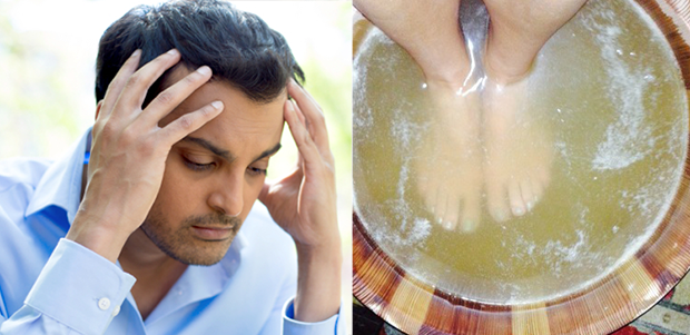 پاؤں میں گردش کرتا خون اکثر سر کی شریانوں میں خون کا بہاؤ کم کردیتا ہے اس لئے ایک باتھ ٹب میں نیم گرم پانی میں مسٹرڈ پاؤڈر ملائیں اور آدھے گھنٹے کے لئے پاؤں ٹب میں ڈبو دیں تاکہ خون کی گردش معمول پر آجائے