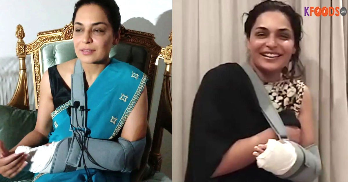 یہ کہنا پاکستان کی نامور اداکارہ میرا کا جنھیں ایک وائرل کلپ میں بازو پر پٹی باندھے دیکھا جاسکتا ہے. زخمی ہونے کے باوجود میرا حوصلے سے مسکرا رہی ہیں. دیکھیں