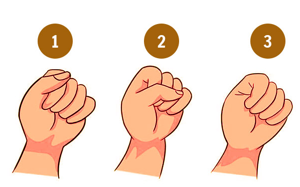عام طور پر ہم اپنی مٹھی کسی کو مکا مارنے کے لیے بند کرتے ہیں یا پھر لاشعوری طور پر انگڑائی لیتے ہوئے- لیکن ماہر نفسیات کے مطابق آپ اپنی مٹھی کس طریقے سے بند کرتے ہیں، یہ آپ کی شخصیت کے بارے میں بہت کچھ بتاتی ہے۔ تو ٹیسٹ شروع کرنے سے پہلے ایک لمبی سانس لیں اور مٹھی بند کریں۔ اب دیکھنا یہ ہے کہ آپ کا تعلق ان تین گروہوں میں سے کس سے ہے۔