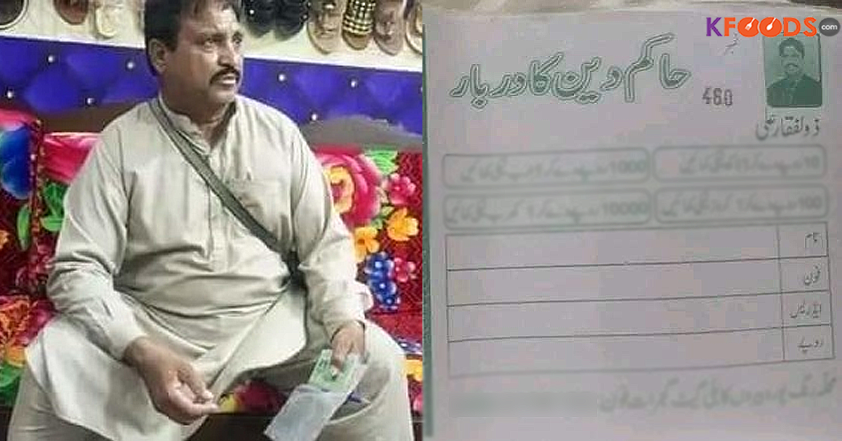 بھکاری سے ملنے والی رسید بُک پر حاکم دین کا دربار لکھا گیا ہے جبکہ اسی کے نیچے چار خانے بنائے گئے ہیں۔