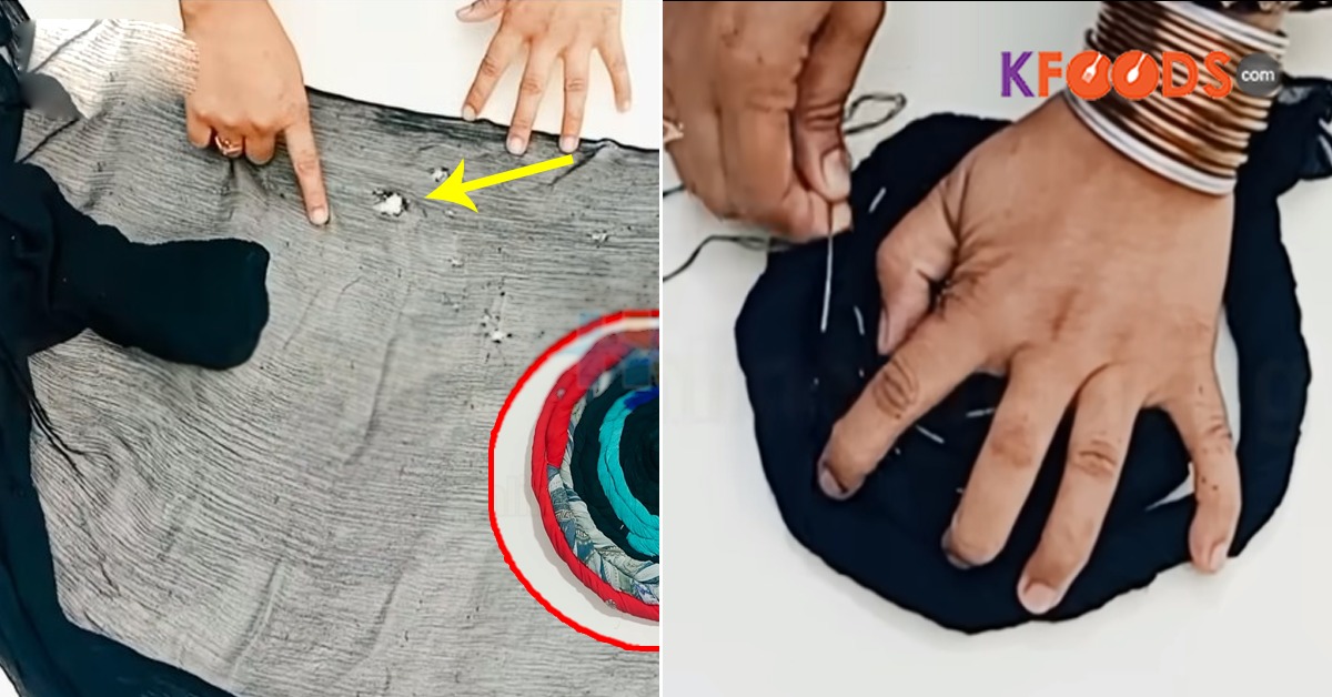 ۔ جب وہ جلیبی کی طرح گول ہوجائے تو ایک نالی والی بڑی سوئی لیں اور اس میں رضائی سینے والا دھاگہ ڈال کر اسے سیتے جائیں۔