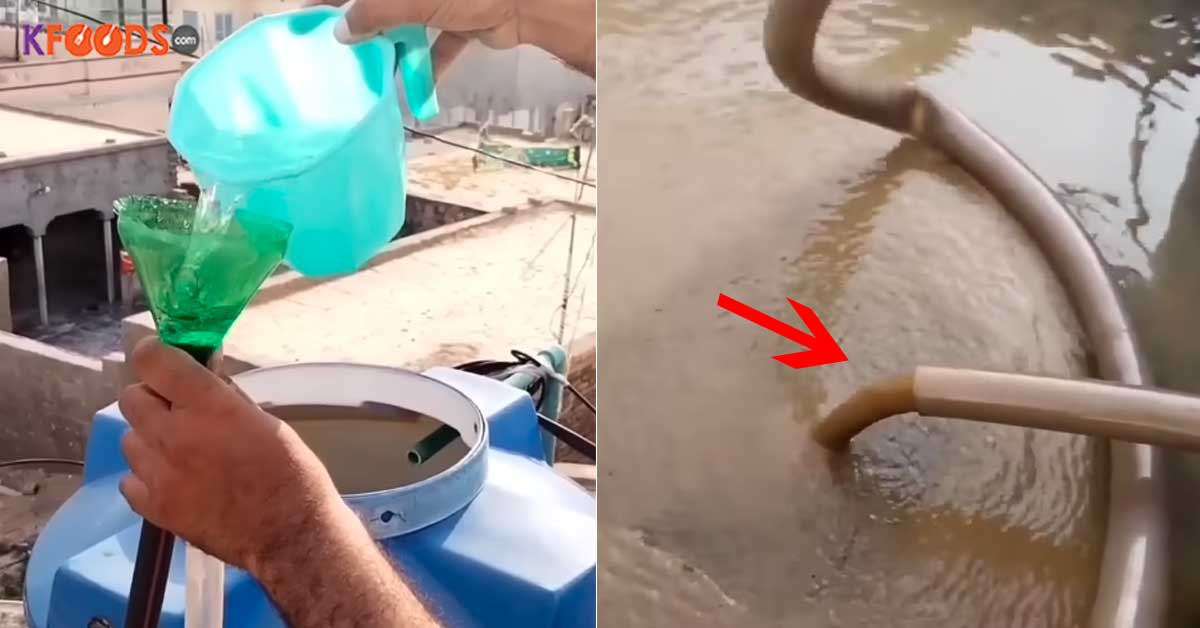 ۔ اب ڈالا گیا پانی نکلنے کے بعد ٹنکی کے نیچے کا گندا پانی بھی نکلنا شروع ہوجائے گا۔ اور کچھ ہی دیر میں سارا پانی گندگی سمیت باہر آجائے گا۔