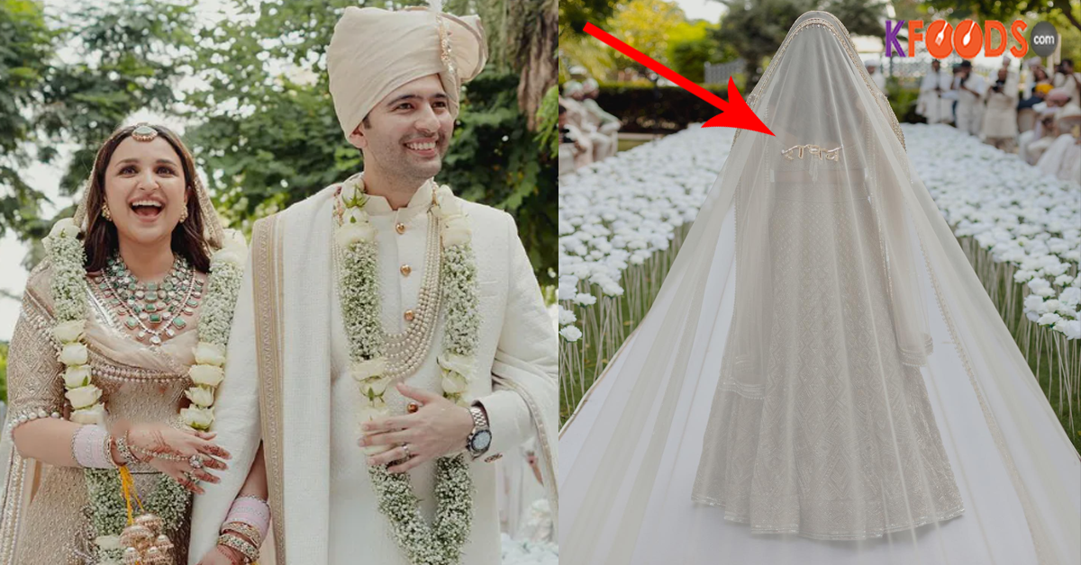 لباس کے ساتھ پرینیتی نے خصوصی گھونگھٹ بھی تیار کروایا تھا جس پربان کے شوہر راگھو کا نام لکھا ہوا تھا۔ بھارتی میڈیا کے مطابق سنہری حروف میں لکھا ہوا یہ نام سونے کے تاروں سے ہی لکھوایا گیا تھا۔