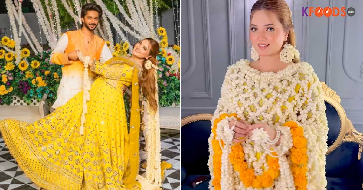 امبانی کی بہو جیسا پھول والا دوپٹہ۔۔ ربیکا خان کے مایوں کے جوڑے کی قیمت کیا ہے؟ جان کر ہر کوئی حیران