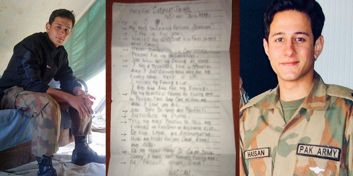 شہید کیپٹن حسن مصاحب 2013 میں کرم ایجنسی میں جام شہادت نوش کر گئے تھے۔ اپنی بہن کو لکھے گئے خط میں سب سے پہلے شہید نے اپنے موبائل کا پاسورڈ بتایا، ساتھ ہی اپنی بہن کو کہا کہ آئی پیڈ تم لے لینا، میرے والٹ میں 6850 روپے ہیں، جبکہ اے ٹی ایم 5000 روپے۔