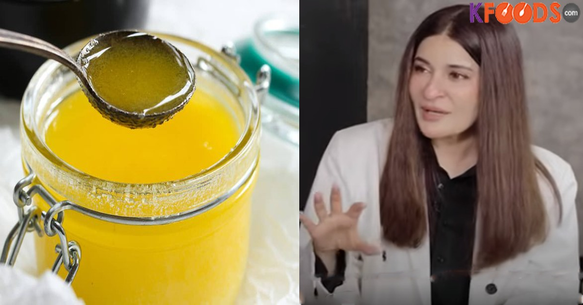 "صبح اٹھ کر دیسی گھی ایک چمچ کھانے کی عادت بنا لیں اگر ایسے نہیں کھا سکتے تو چائے یا کافی میں ملا کر نہار منہ دیسی گھی ضرور کھائیں. جسم میں اگر پیٹ کا نظام درست ہوگا تو جلد بھی حسین ہوگی اور اس کے لئے دیسی گھی کا استعمال ضروری ہے"