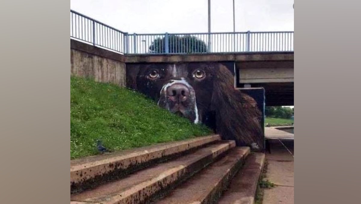 اس کے علاوہ اگر آپ نے پہلی نظر میں ہی یہ سمجھ گئے ہیں کہ اس پل کے برابر والی دیوار پر ایک بڑے سے کتے کی تصویر کسی فنکار نے بڑی مہارت سے بنائی ہے جو دیکھنے میں بالکل اصل لگتی ہے۔ یہی نہیں اس تصویر میں ایک جانور نہیں بلکہ ایک چیز اور بھی ہے اور وہ کبوتر ہے جو ایک طرف نظر آ رہا ہے۔