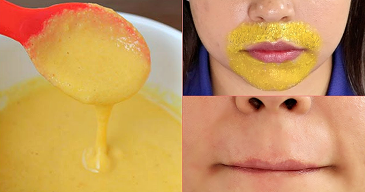 دو چمچ دہی میں تھوڑی مقدار میں ہلدی اور بیسن کو شامل کر لیں اور اس کو اچھی طرح مکس کر کے پیسٹ بنا لیں- اس کے بعد اس کو اپر لپس پر لگا کر پندرہ منٹ کے لیۓ چھوڑ دیں اس کے بعد اس کو رگڑ کر اتار لیں- اس سے ایک تو چہرے کی چلد چمکدار ہوتی ہے دوسرا اس سے بالوں کی نشونما میں بھی واضح طور پر کمی آتی ہے اور کچھ ہی عرصے میں اپر لپس پر سے بال ختم ہو جاتے ہیں-
