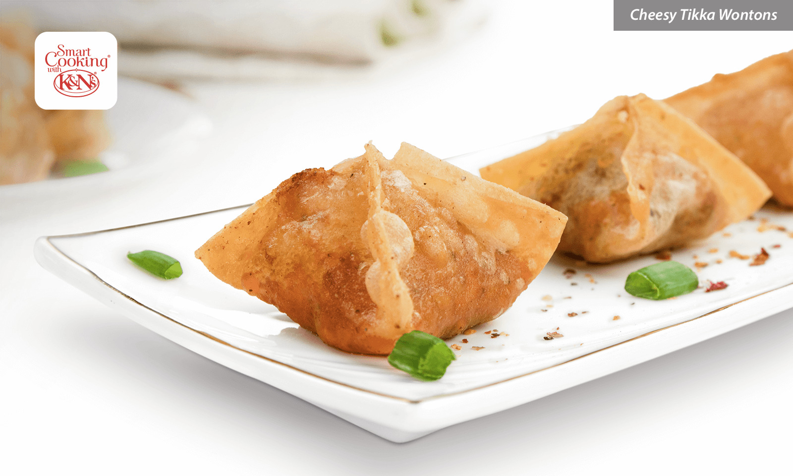 Crunch into Cheesy Tikka Wontons for a burst of flavor. These use K&N’s Tikka Toppingz ’n Filling to give you a real BBQ taste. The pre-cut chicken makes filling the wrappers easy and neat. You spend less time in the kitchen and more time enjoying your meal.