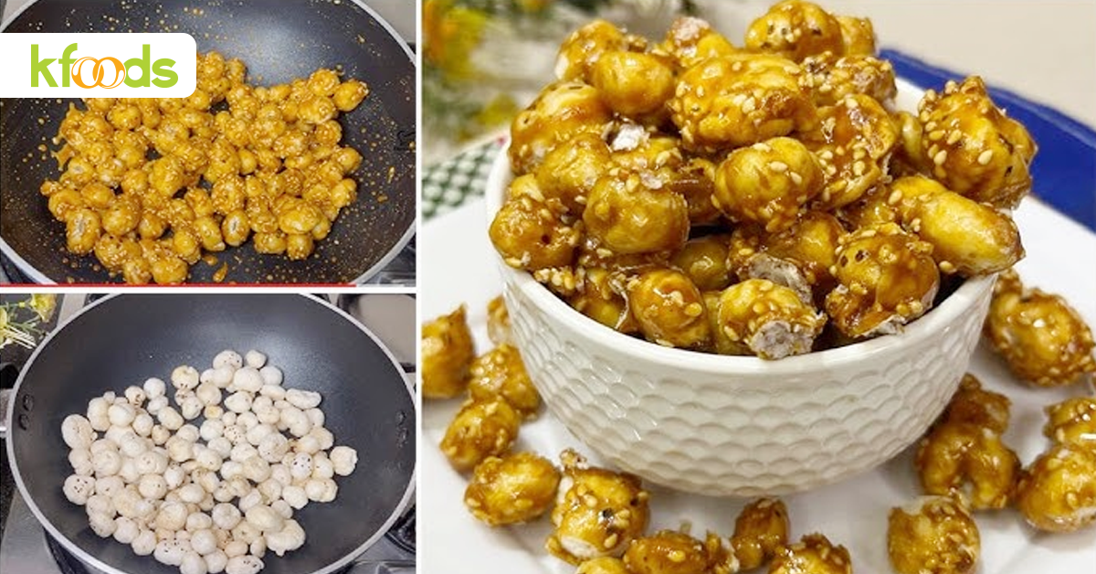 اس کے لئے آپ بڑے والے نرم پھول مکھانے لے لیں. ساتھ ہی تازہ گڑ لے لیں. ایک پین میں ایک چمچ دیسی گھی ڈال کر پھول مکھانے ہلکے سے گرم کر کے نکال لیں اور ان پین میں سارا گڑ ڈال کر چمچ چلاتے رہیں. ہلکا پانی ڈال کر گڑ کو ہلکا براؤن کر لیں اور ایک بڑا چمچ سونف اور ڈیڑھ چمچ تل شامل کر کے پھول مکھانے ڈال لیں.